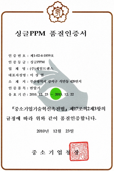 Single PPM 인증서 국문 [이 게시물은 최고관리자님에 의해 2011-09-20 14:27:58 제품관리에서 이동 됨] [이 게시물은 최고관리자님에 의해 2011-09-21 03:30:51 게시판에서 이동 됨] [이 게시물은 최고관리자님에 의해 2011-11-02 13:14:08 제품자료실에서 이동 됨]